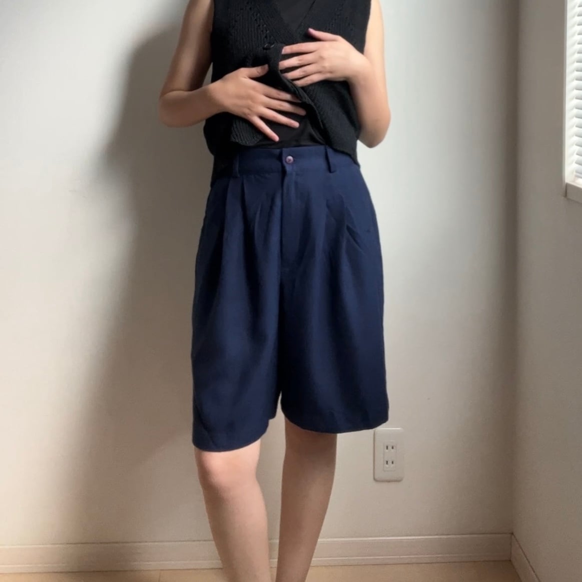 LadiesのS~Mくらいのサイズ感。フォーマルまではいかないけど綺麗目。軽い素材ですがシルエットが綺麗です。Blackが重たく感じる日はNavyいかがですか☆