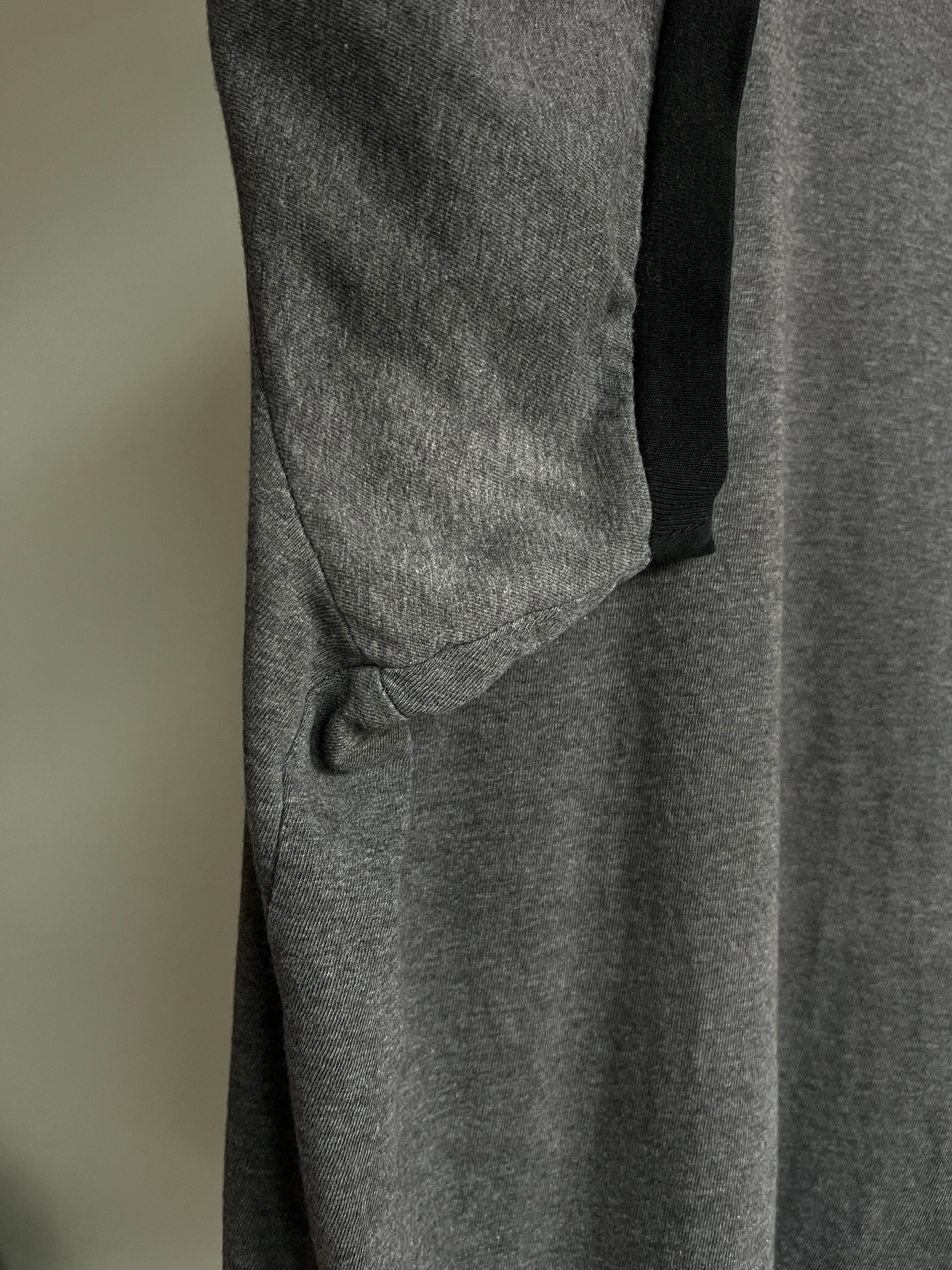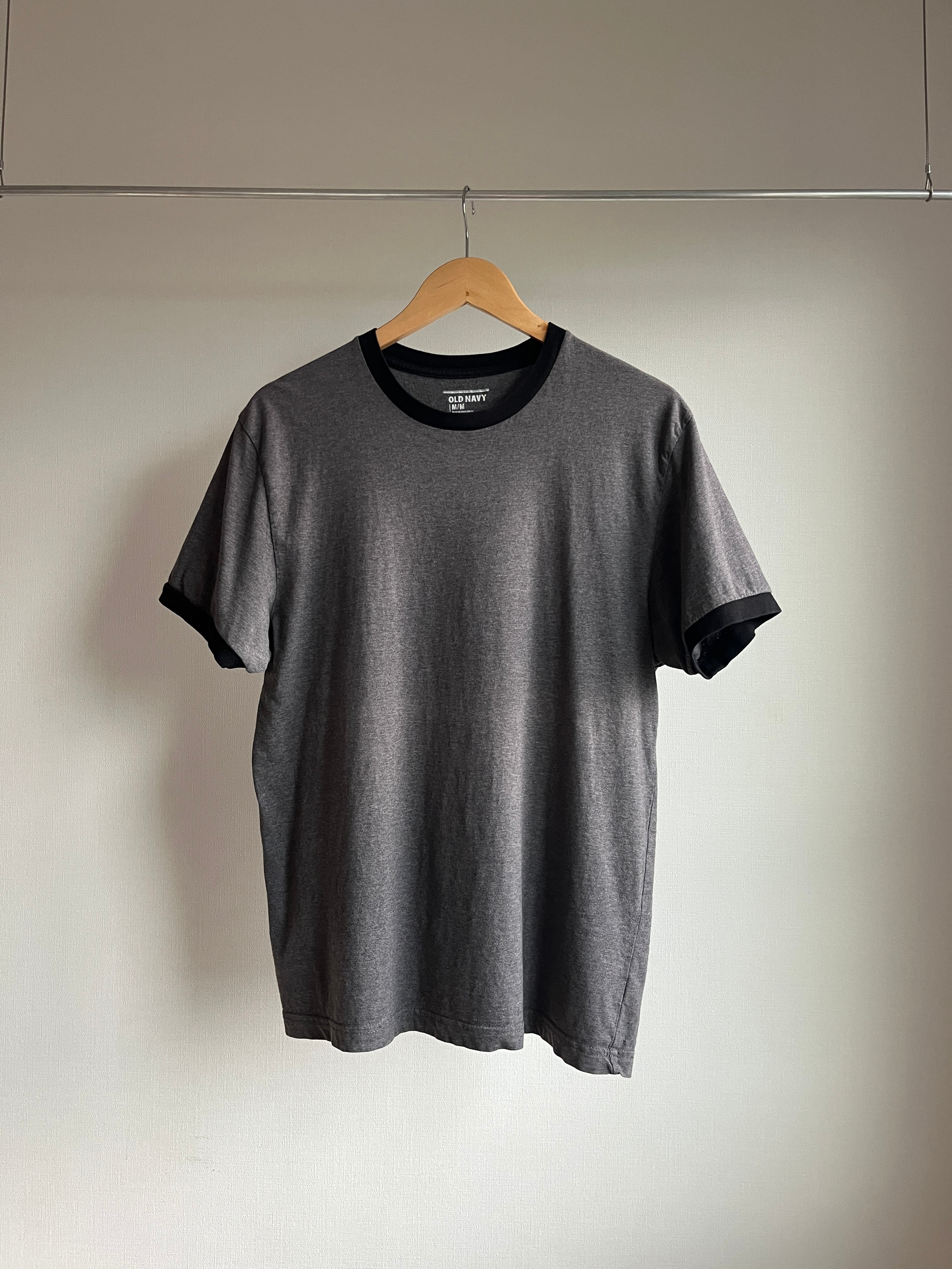 両脇部分に若干色落ちと生地がパサつく箇所アリ。着た時には見えず肌に触れないですが、画像でご確認ください!リンガーだけどカラーリングがカジュアルすぎずおすすめです!