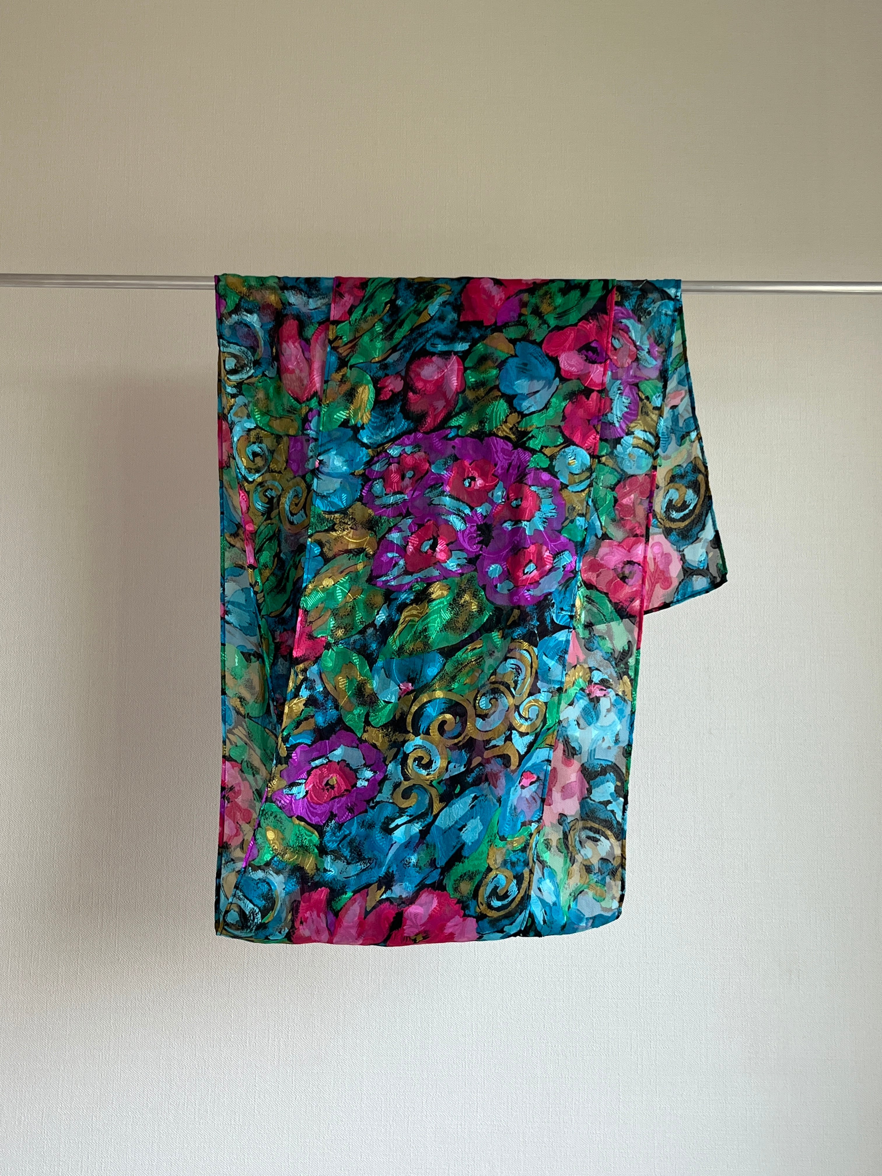 透け感ありで、オーガンジーっぽい質感です。パキッとした色味ですが素材で軽さが出ます!長さがあるのでベルトにも、インテリアにも◎
