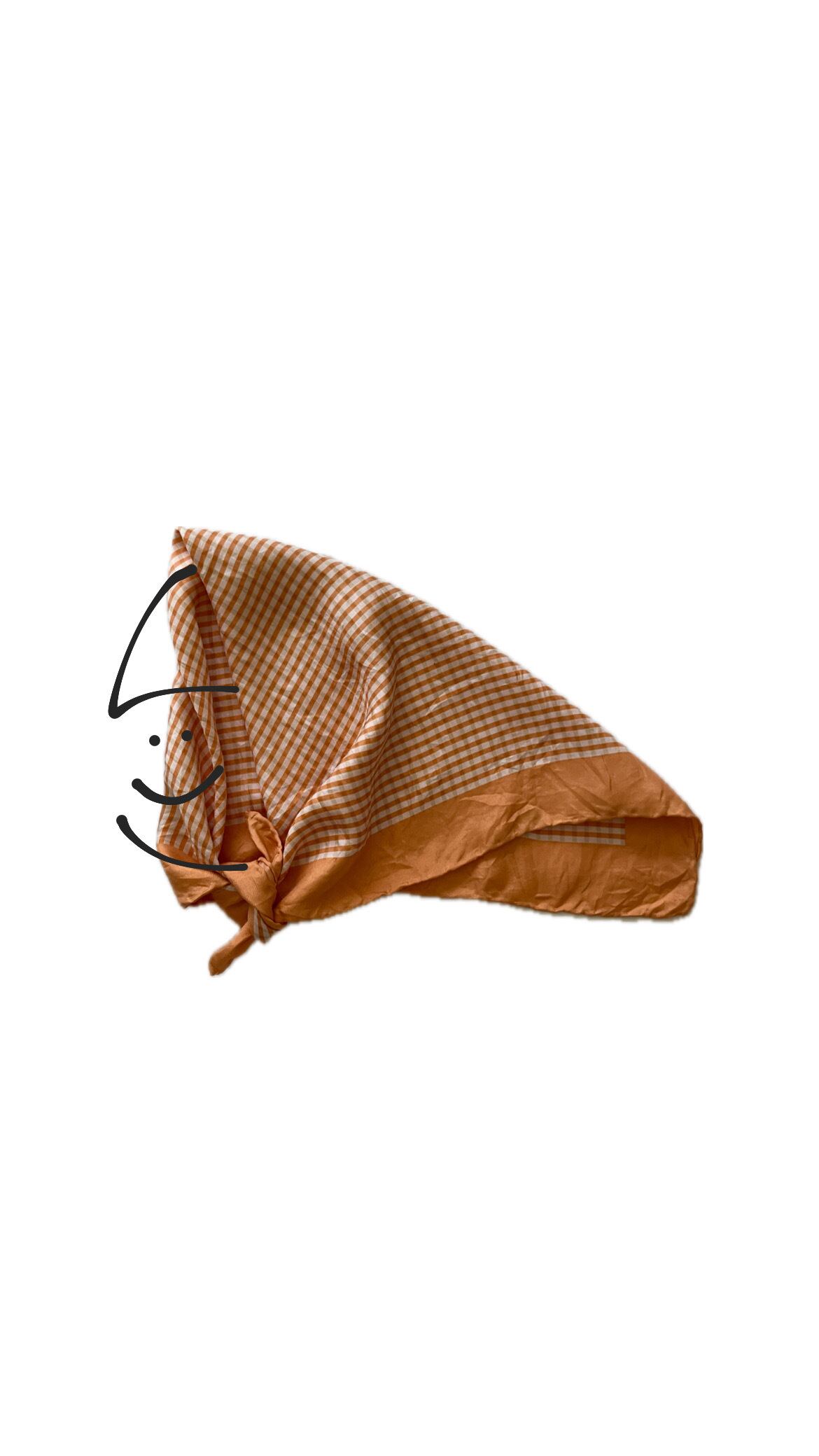 シルクっぽいツヤのある生地。頭にも巻けるサイズです。肌に馴染むカラーで合わせやすい◎