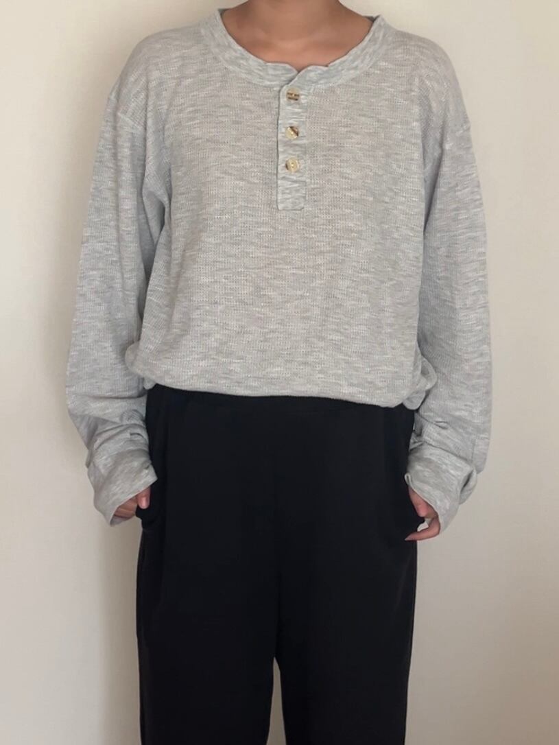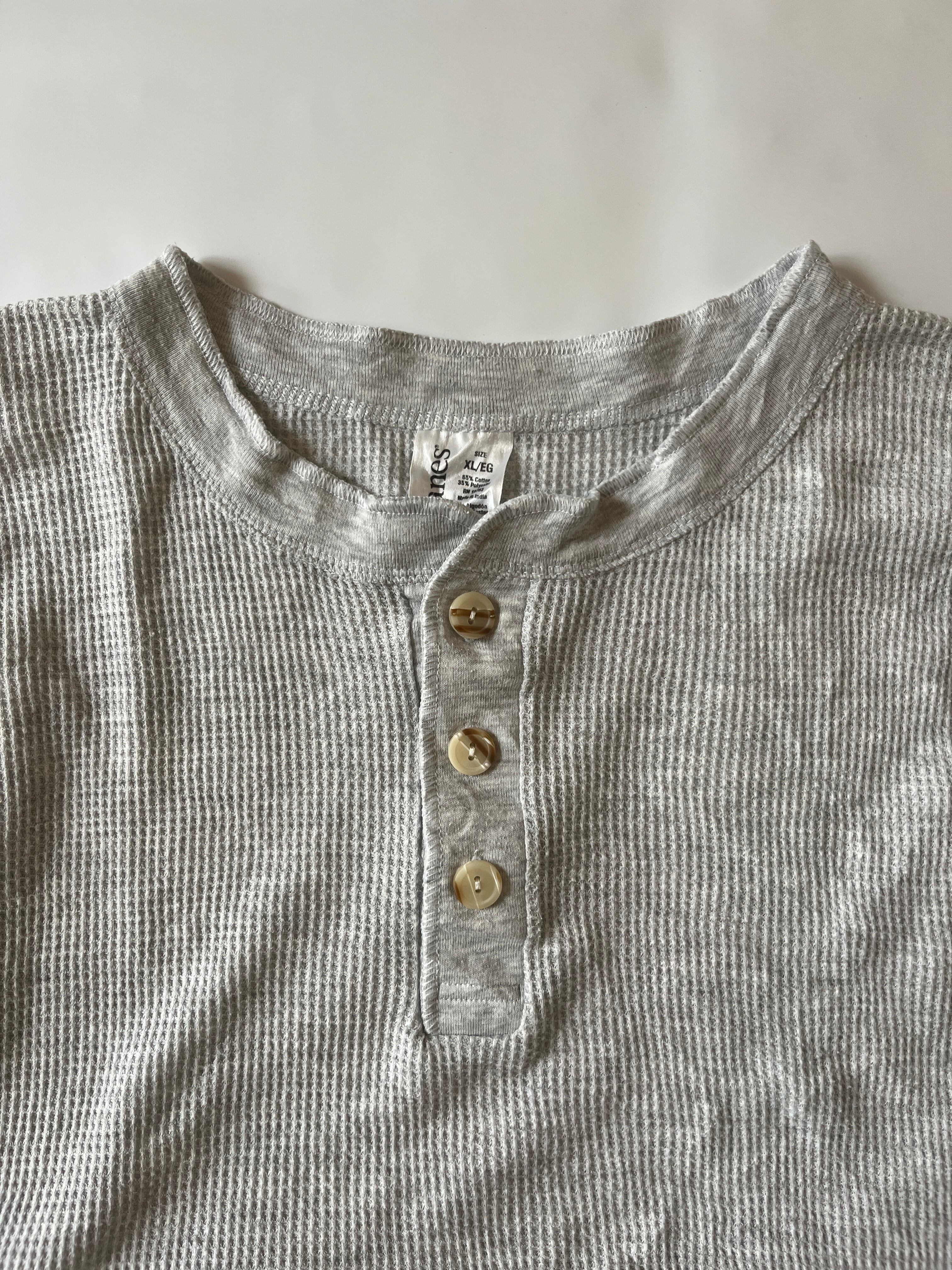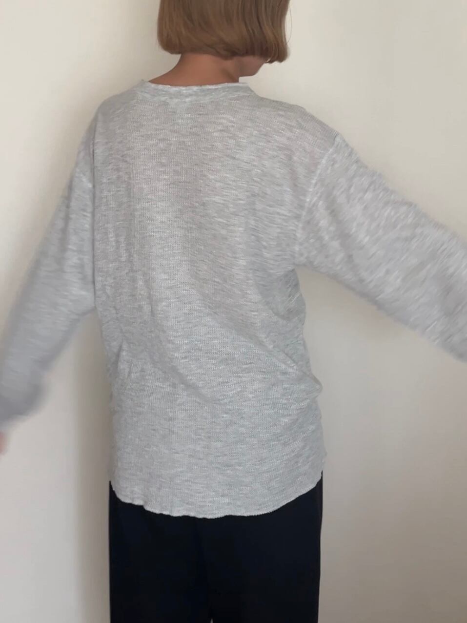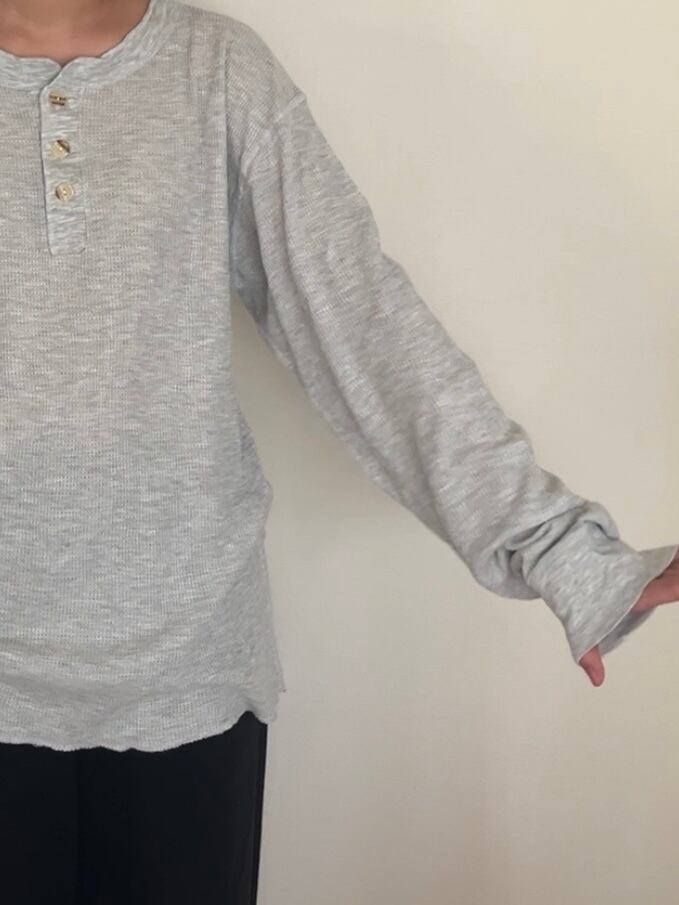 右手の袖口に汚れあり。よく見ると透ける軽い生地です。袖長めでたぷっとボリュームが出るのでLadies特にオススメです。Hanesなので安心の着心地◎